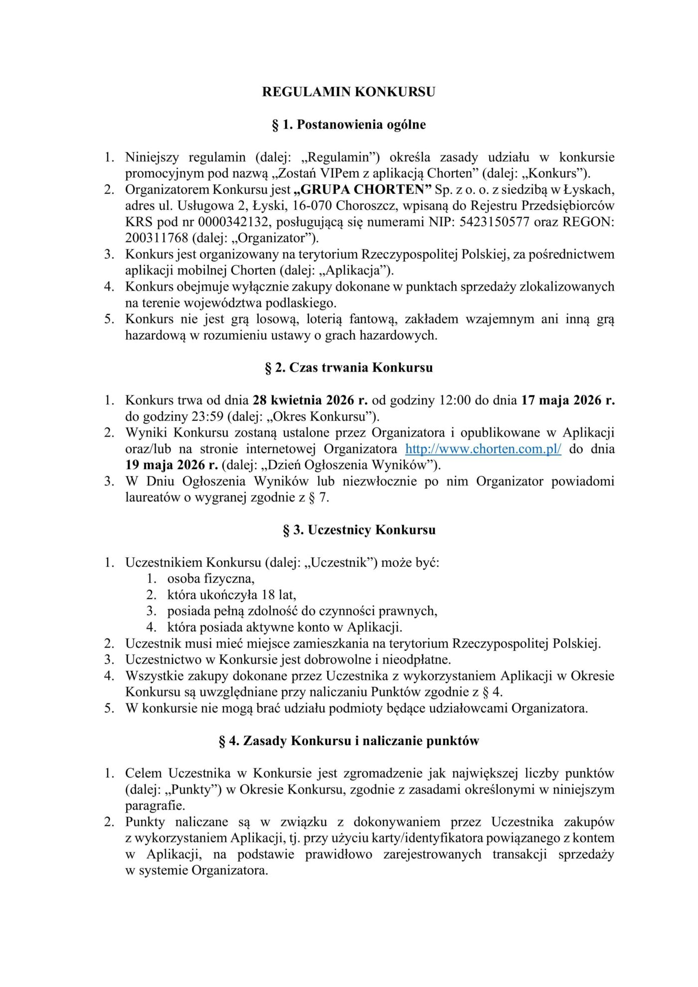Uczestnictwo w Konkursie nie wymaga odrębnego zgłoszenia. W Konkursie biorą udział wszyscy Użytkownicy, którzy w Okresie Konkursu dokonują zakupów z wykorzystaniem Aplikacji, zgodnie z Regulaminem. Konkurs dotyczy sklepów z aplikacją na terenie województwa podlaskiego.